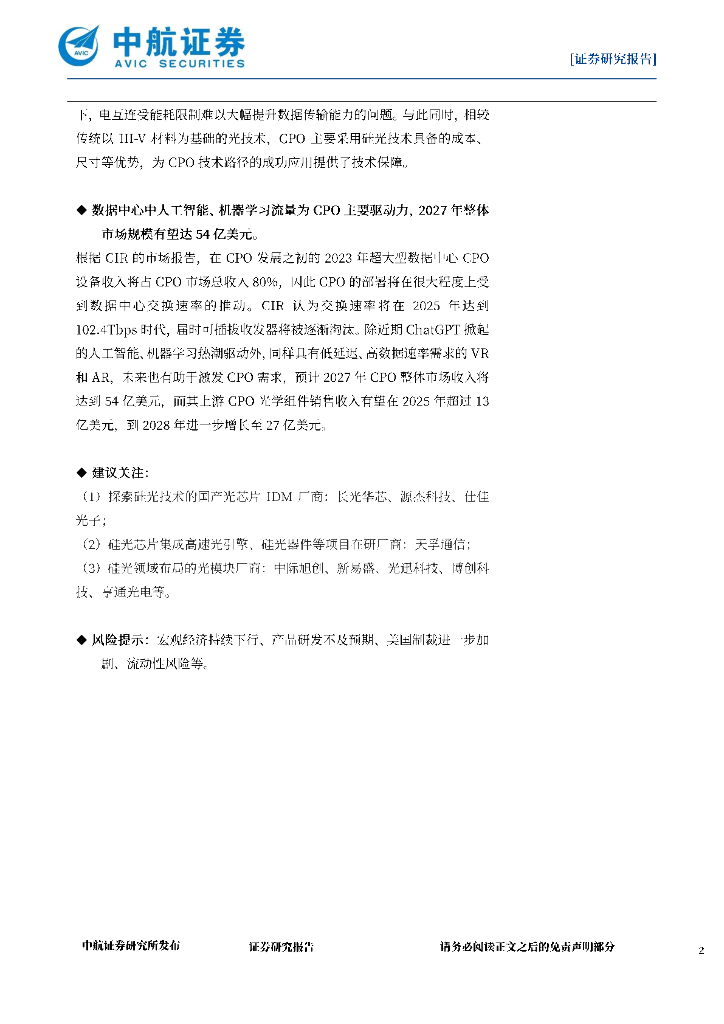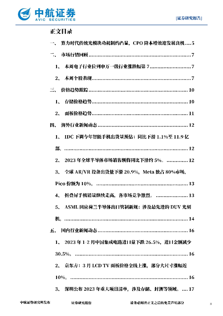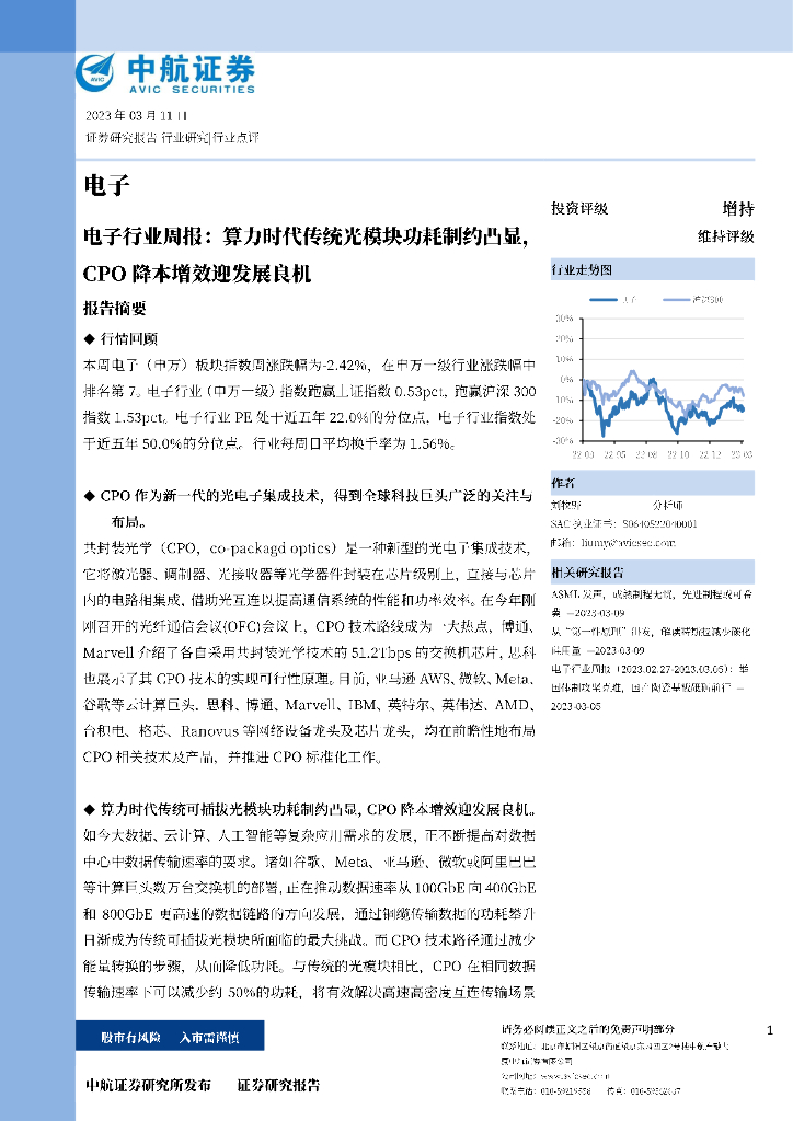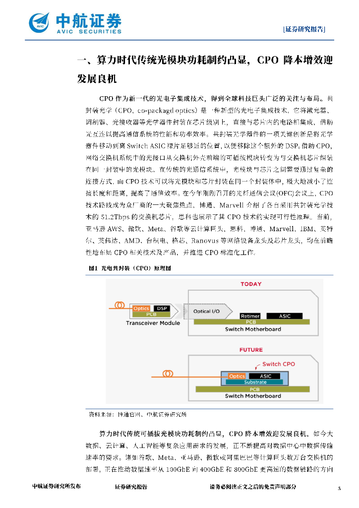 中航证券:电子行业周报:算力时代传统光模块功耗制约凸显,CPO降本增效迎发展良机.pdf