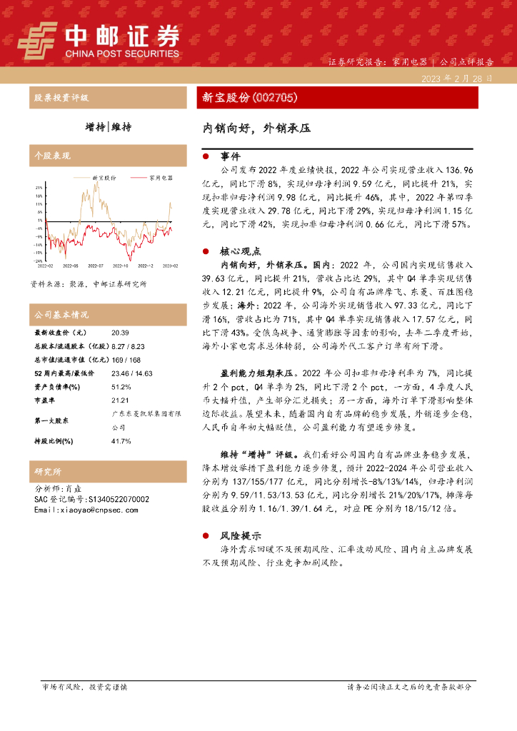 中邮证券:新宝股份(002705)-内销向好,外销承压.pdf