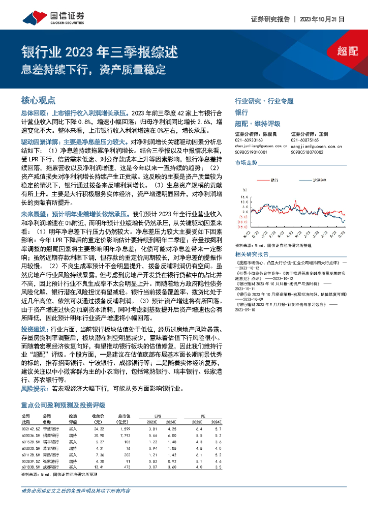 国信证券:银行业2023年三季报综述:息差持续下行,资产质量稳定.pdf