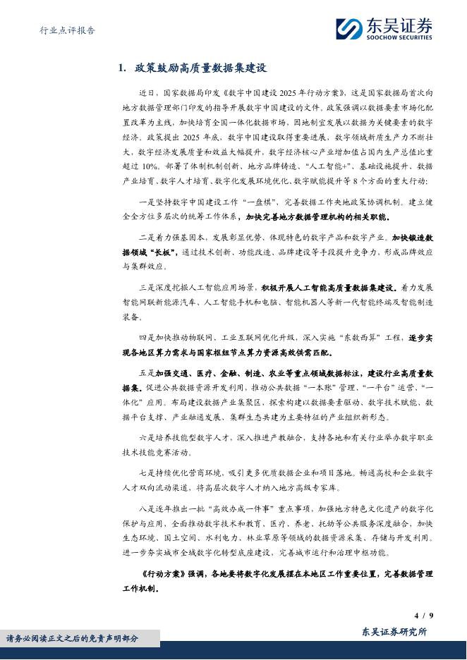 东吴证券:计算机行业点评报告:数字中国2025强调高质量数据集.pdf