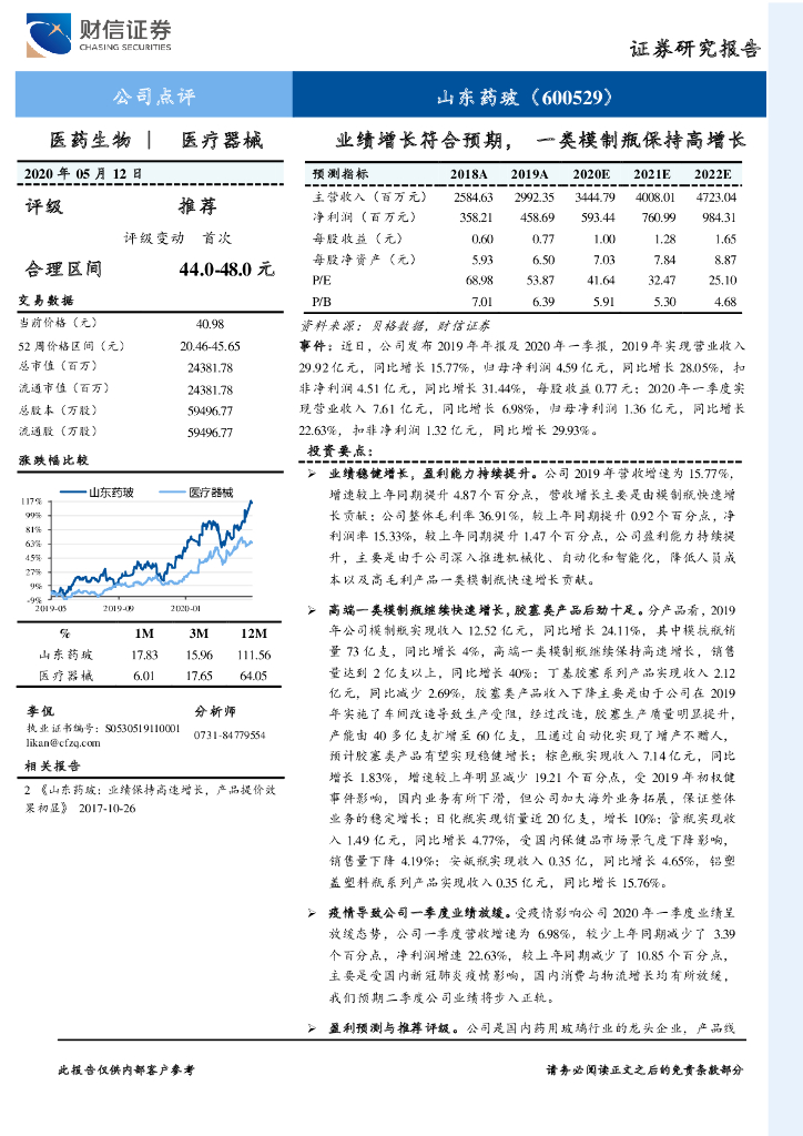 财信证券:山东药玻(600529)-业绩增长符合预期,一类模制瓶保持高增长.pdf