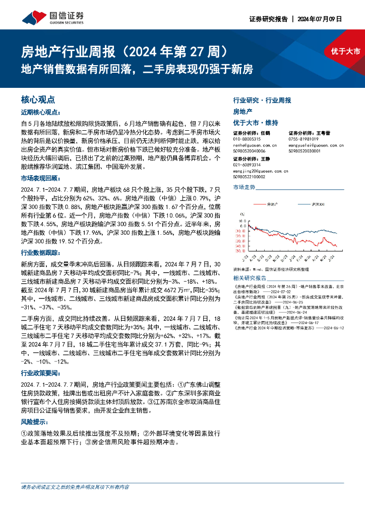 国信证券:房地产行业周报(2024年第27周):地产销售数据有所回落,二手房表现仍强于新房.pdf