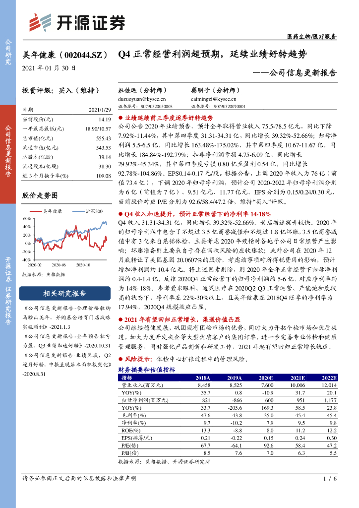 开源证券:美年健康(002044)-公司信息更新报告:Q4正常经营利润超预期,延续业绩好转趋势.pdf