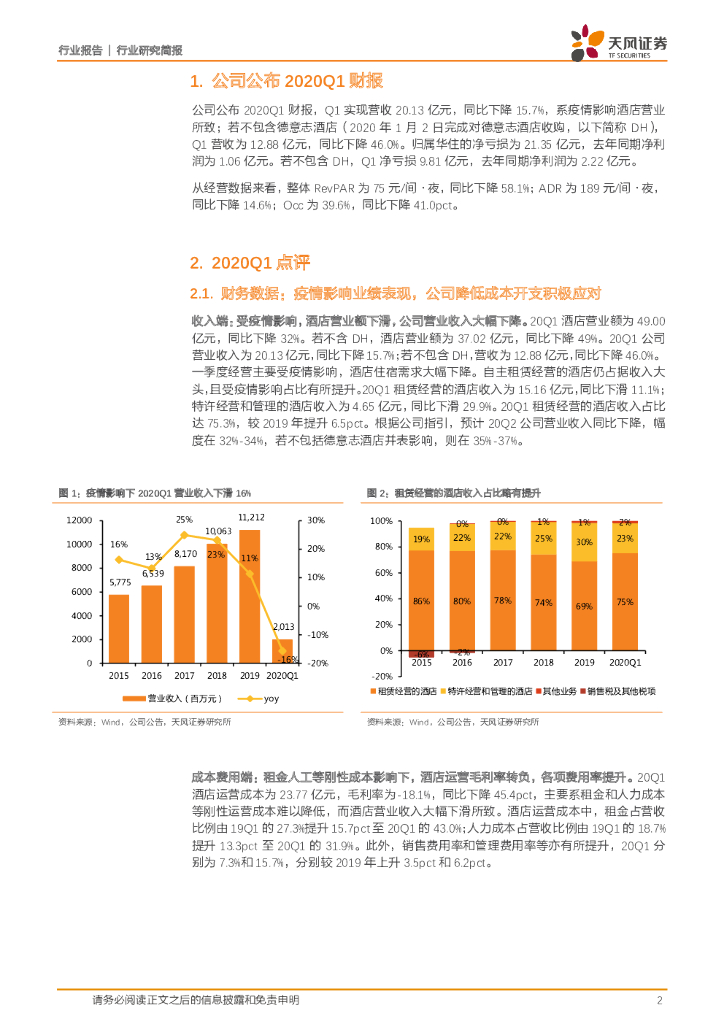 天风证券:酒店:华住:Q1亏损21亿,Q2逆势开店“√”型复苏,同店RevPAR恢复近7成.pdf