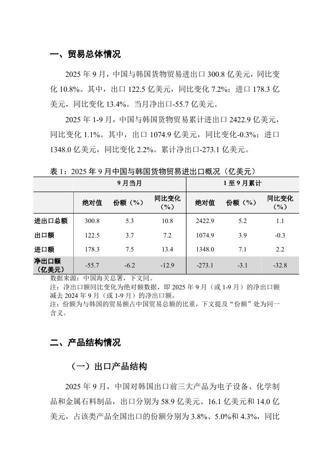 对外经济贸易大学:中韩货物贸易月度监测报告(2025年1-9月).pdf
