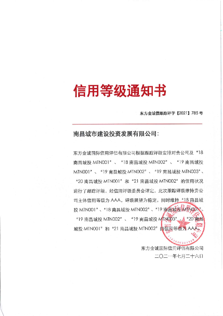 东方金诚:南昌城市建设投资发展有限公司主体信用评级报告及跟踪评级安排.pdf