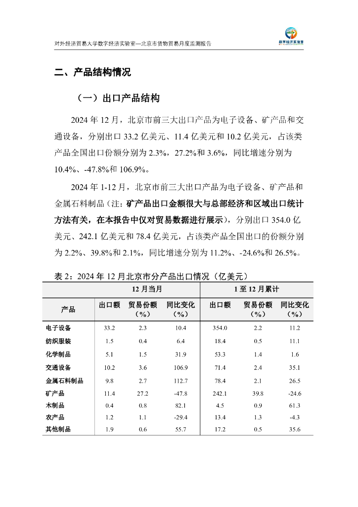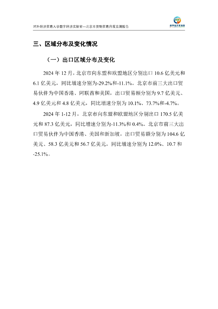 对外经济贸易大学:北京市货物贸易月度监测报告(2024年1-12月).pdf