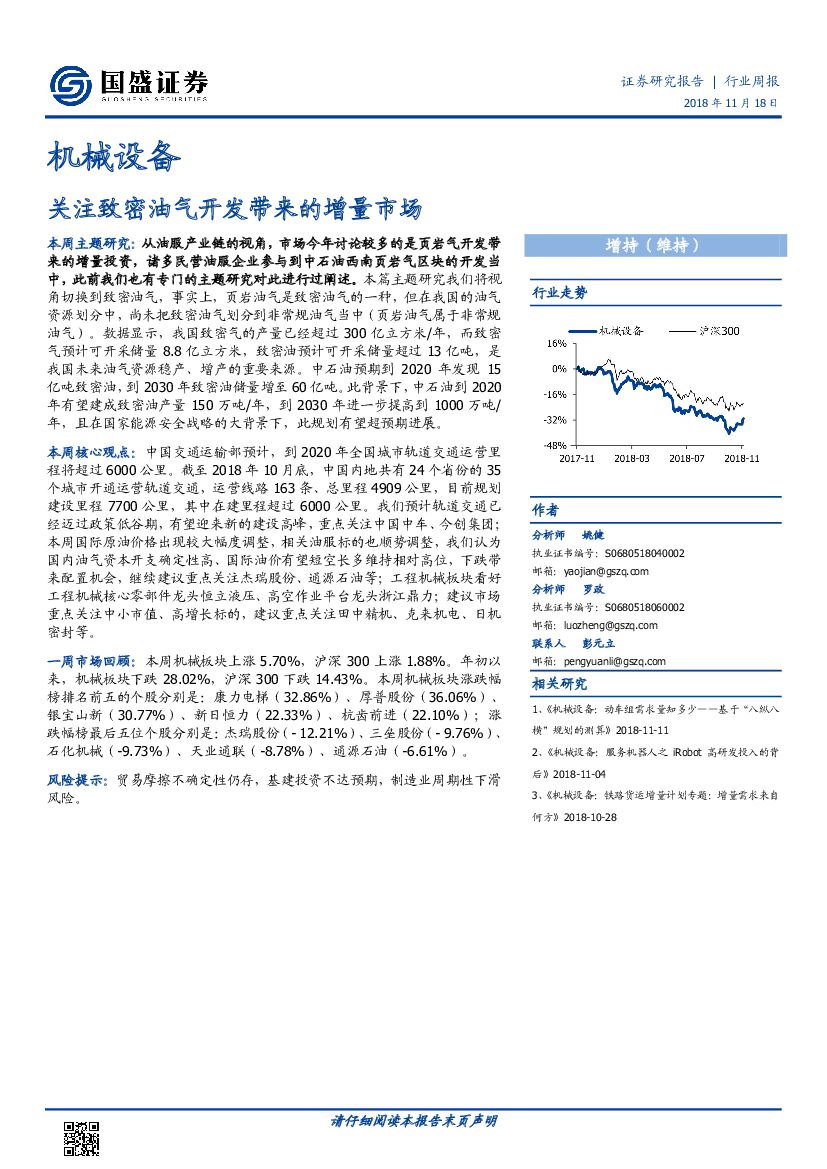 国盛证券:机械设备行业周报:关注致密油气开发带来的增量市场.pdf