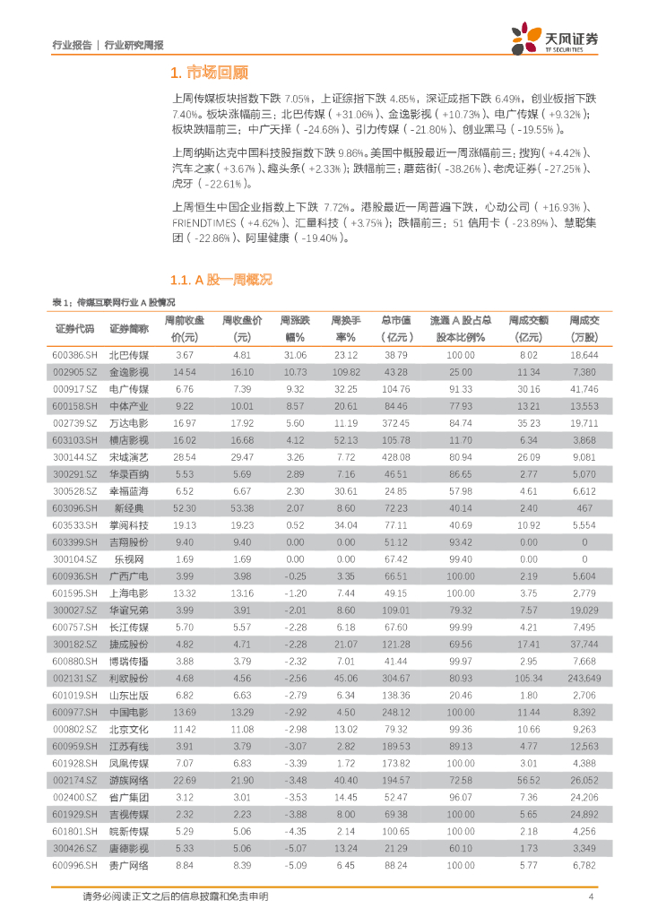 天风证券:传媒一周观点:不改5G&在线经济主线,关注业绩兑现和疫情进展.pdf