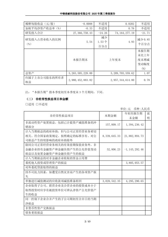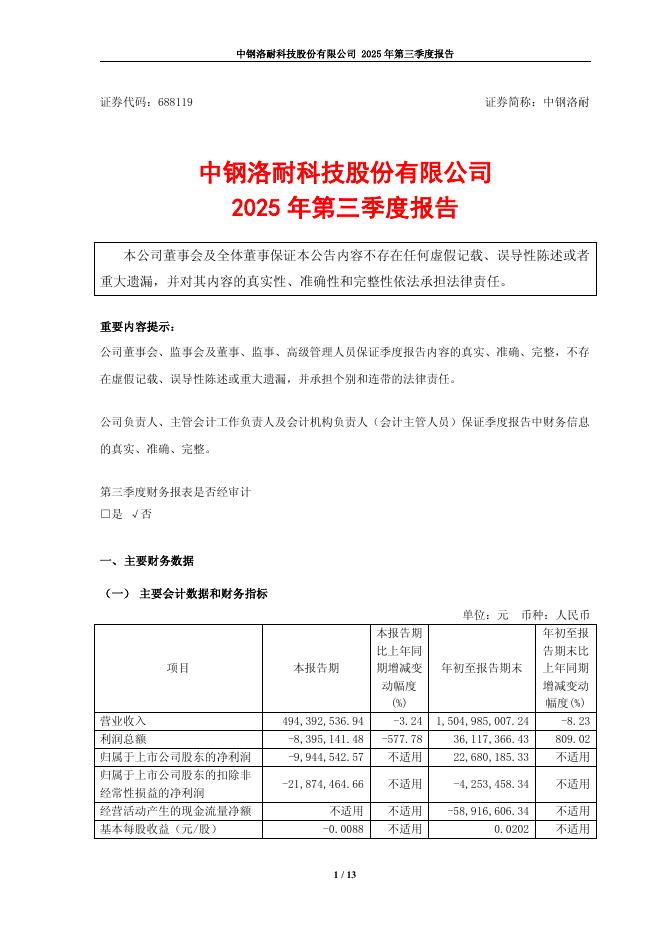 688119-中钢洛耐:中钢洛耐2025年第三季度报告.pdf
