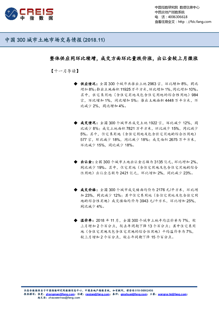 中国指数研究院:中国300城市土地市场交易情报(2018年11月).pdf