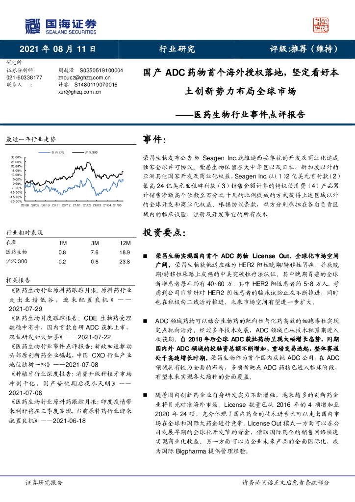 国海证券:医药生物行业事件点评报告——国产ADC药物首个海外授权落地,坚定看好本土创新势力布局全球市场.pdf