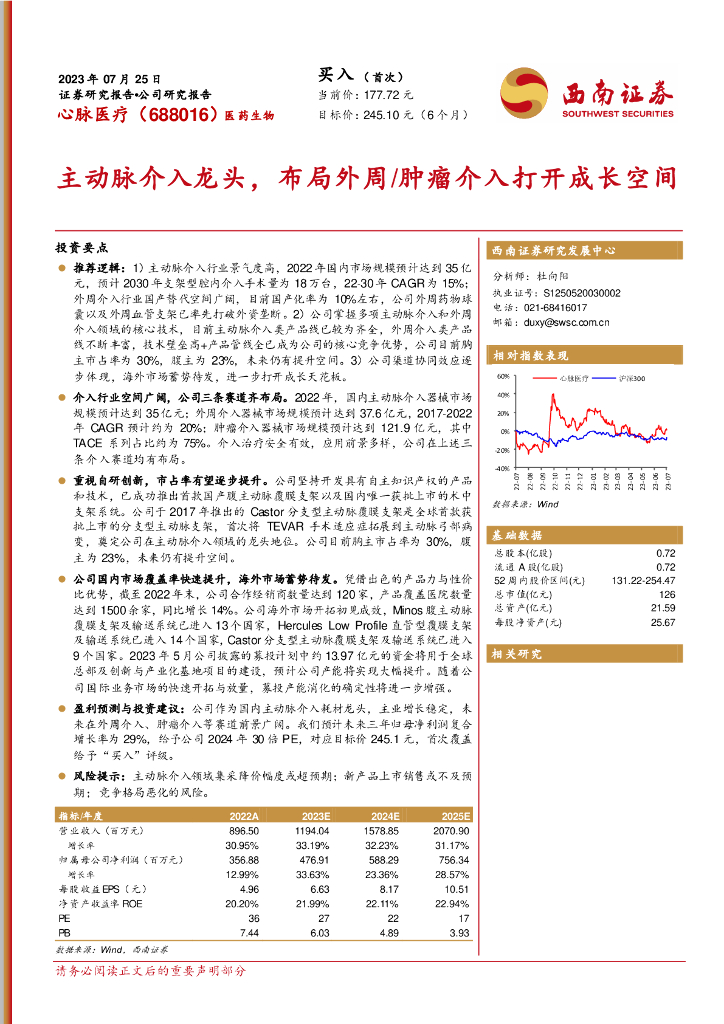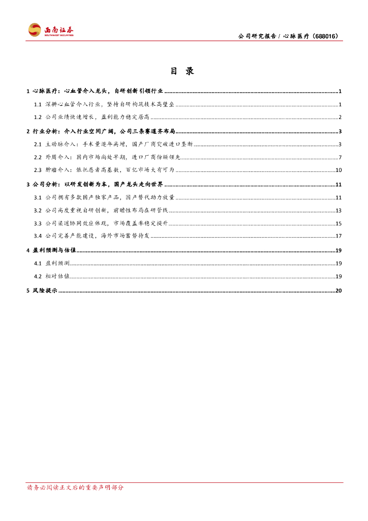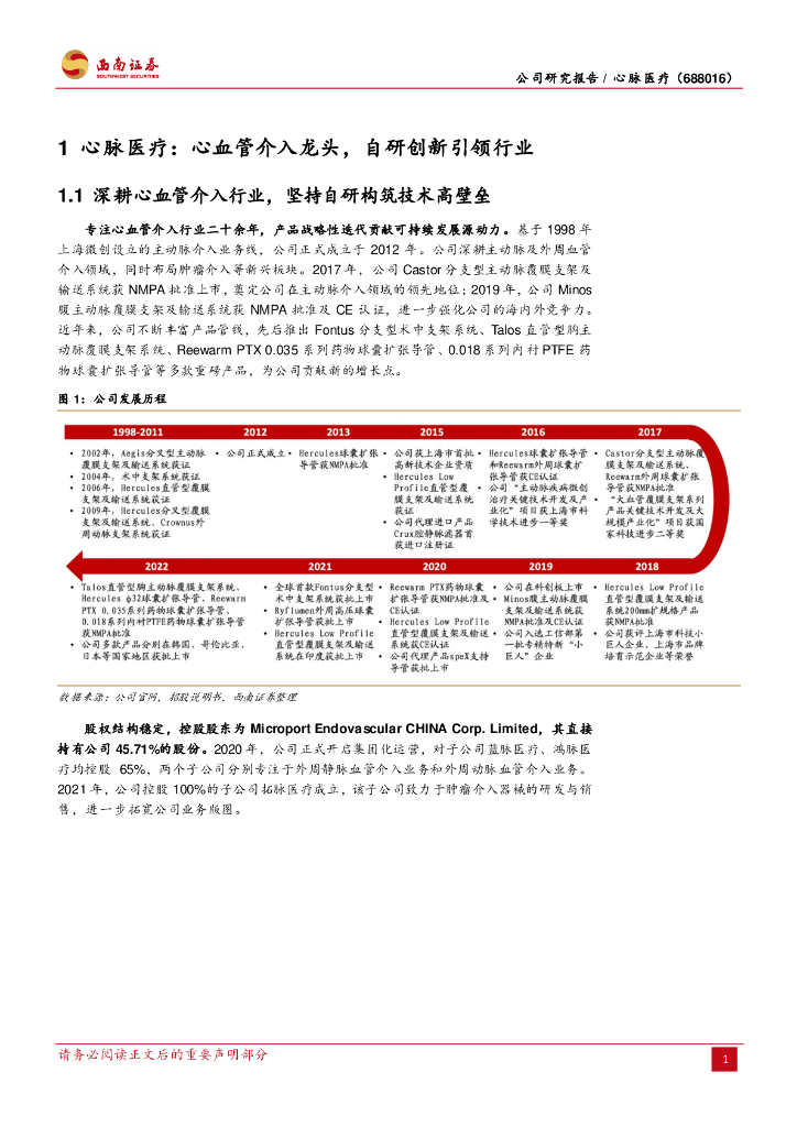 西南证券:心脉医疗(688016)-主动脉介入龙头,布局外周/肿瘤介入打开成长空间.pdf