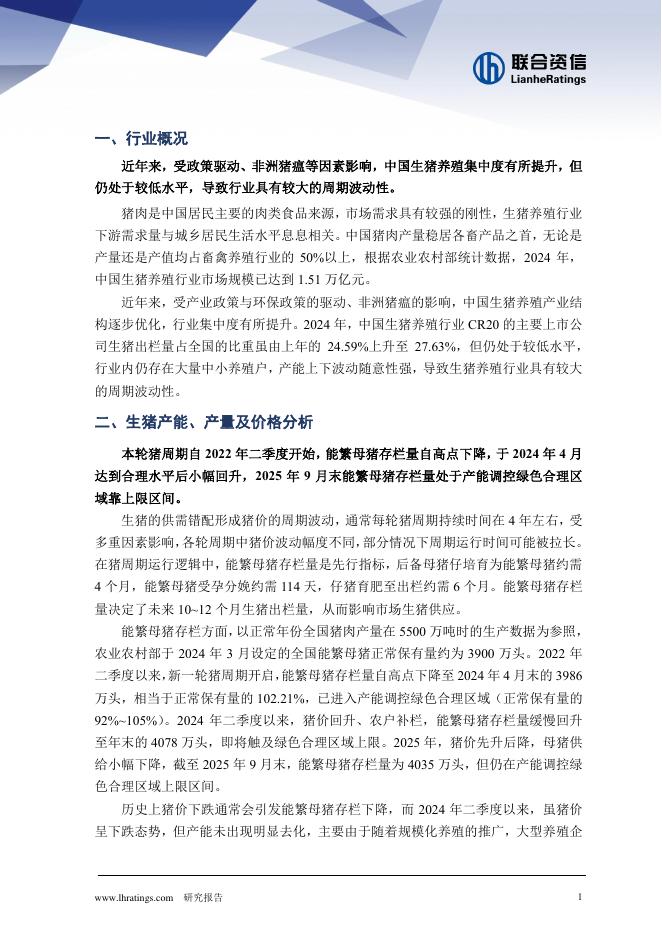 联合资信评估:养殖行业2025年前三季度运行分析.pdf