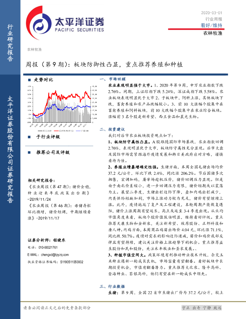 太平洋证券:农林牧渔周报(第9期):板块防御性凸显,重点推荐养殖和种植.pdf