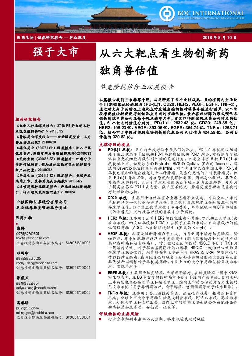 中银国际:医药生物:单克隆抗体行业深度报告-从六大靶点看生物创新药独角兽估值.pdf