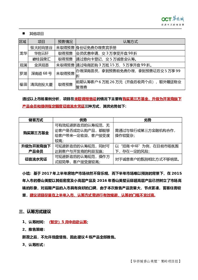 2017深圳华侨城香山美墅果岭认筹蓄客方案建议-房地产.doc
