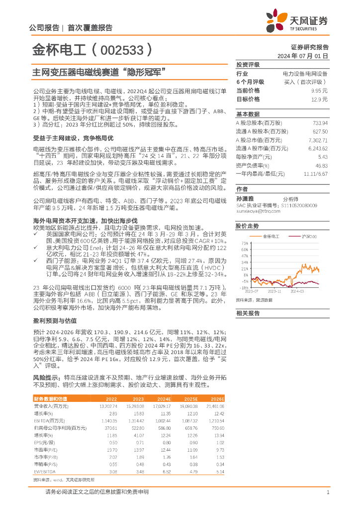 天风证券:金杯电工(002533)-主网变压器电磁线赛道“隐形冠军”.pdf