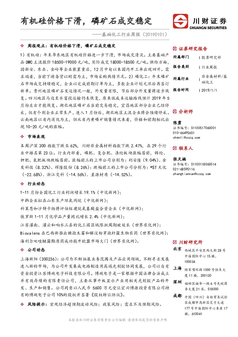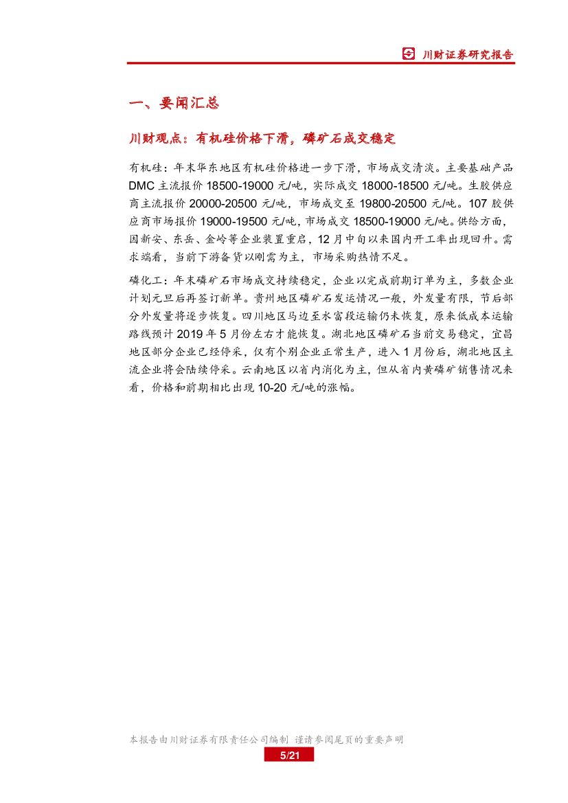 川财证券:基础化工行业周报:有机硅价格下滑,磷矿石成交稳定.pdf
