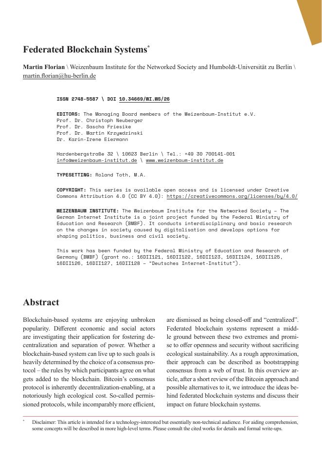 Weizenbaum Institute:联邦区块链系统-可持续性和去中心化之间的更好权衡?(英文版).pdf