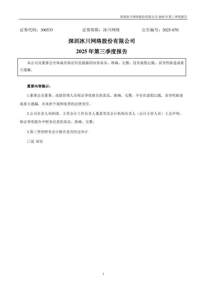 300533-冰川网络:2025年三季度报告.pdf