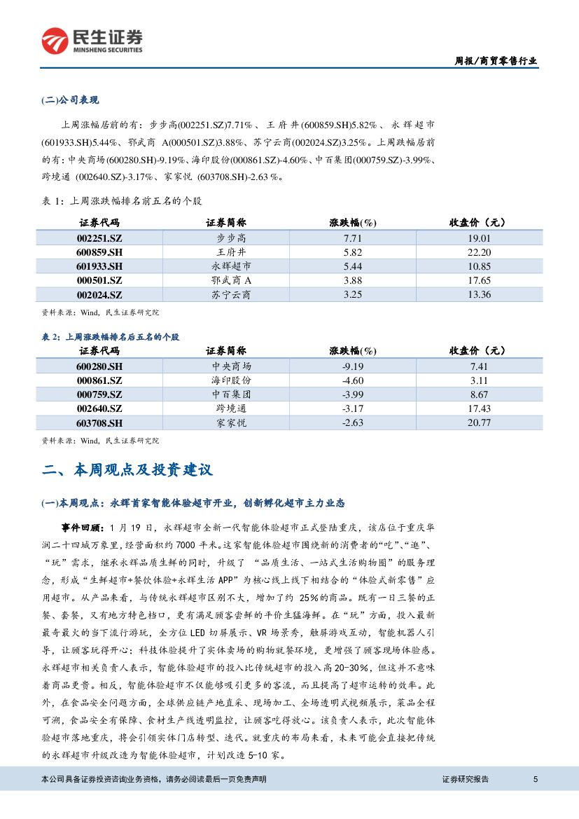 民生证券:商贸零售行业周报:永辉首家智能体验超市开业,创新孵化超市主力业态.pdf