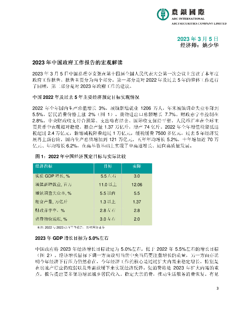 农银国际:2023年中国政府工作报告宏观、投资策略及行业分析.pdf