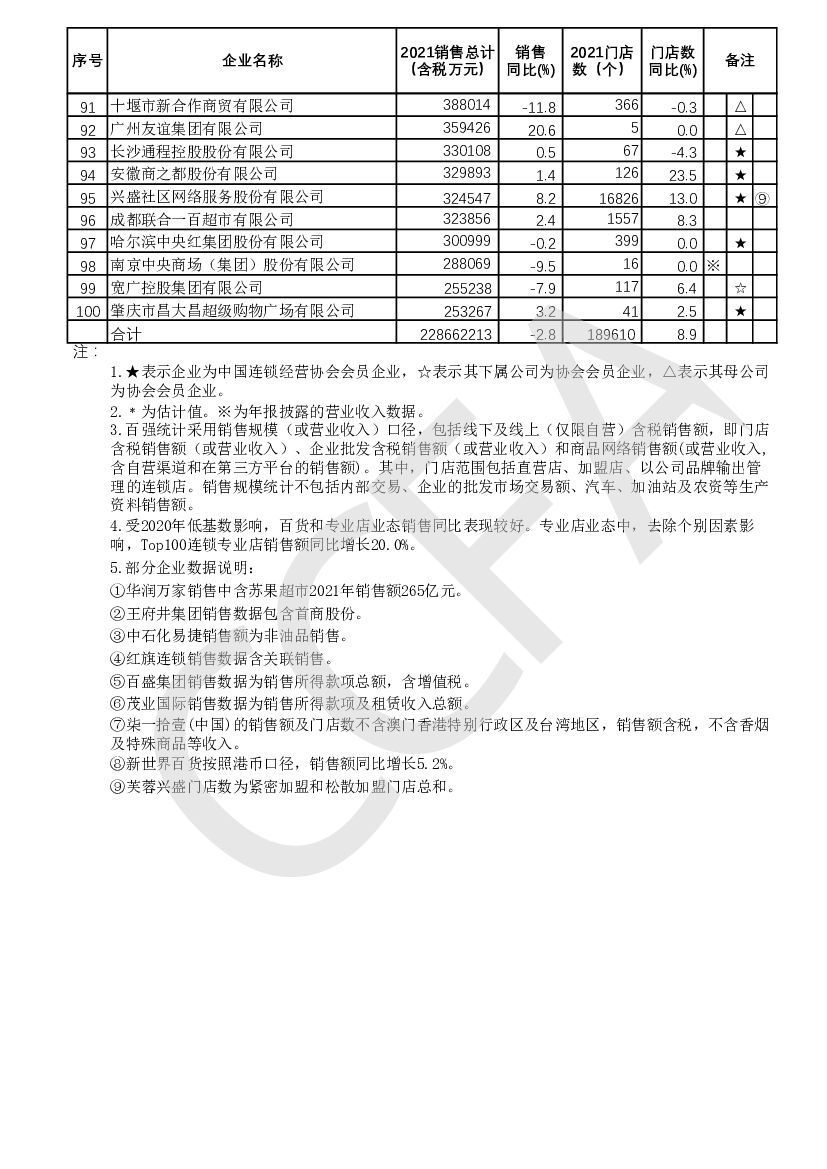 中国连锁经营学会:2021年中国连锁Top100.pdf