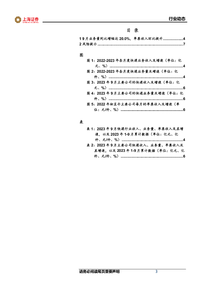 上海证券:快递板块2023年9月数据点评:9月业务量同比增幅达20.0%,单票收入环比提升.pdf