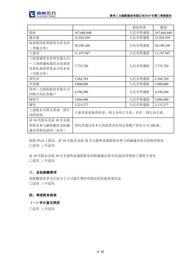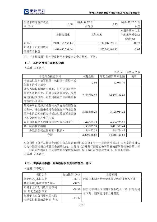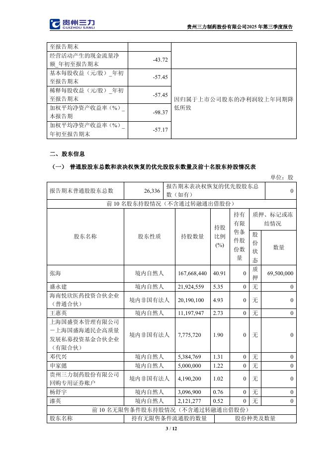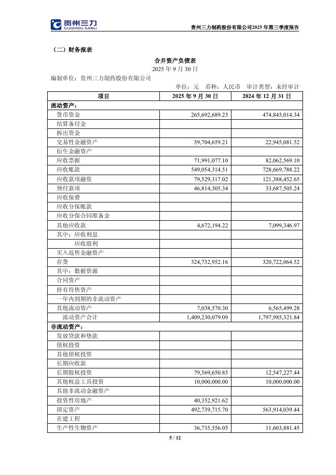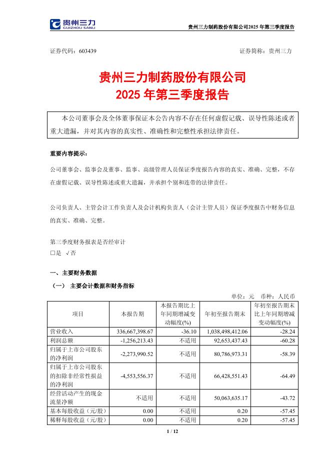 603439-贵州三力:贵州三力制药股份有限公司2025年第三季度报告.pdf