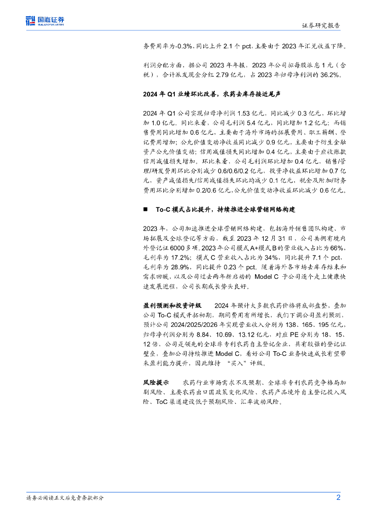 国海证券:润丰股份(301035)-C模式2023年年报及2024年一季报点评:2024Q1业绩环比改善,持续拓展To.pdf