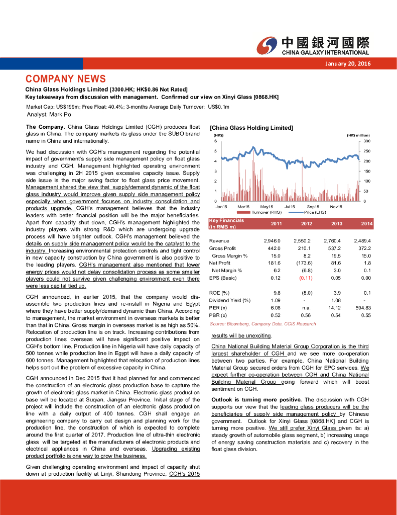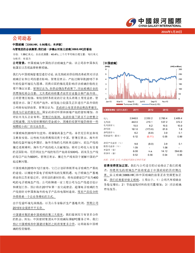中国银河国际证券:中国玻璃(03300)港股公司研究报告-与管理层的会谈摘要;我们进一步确认对信义玻璃【0868.HK】的看法.pdf