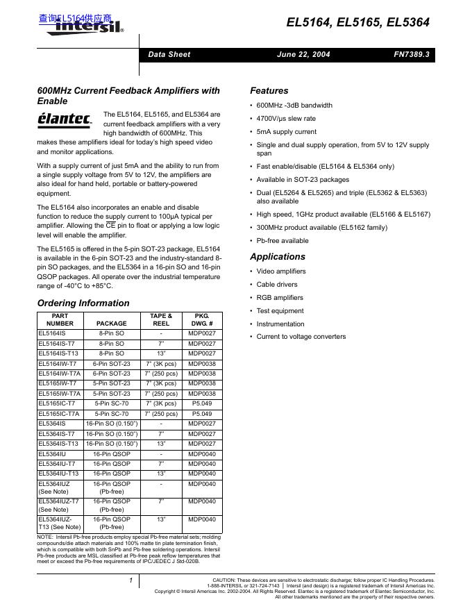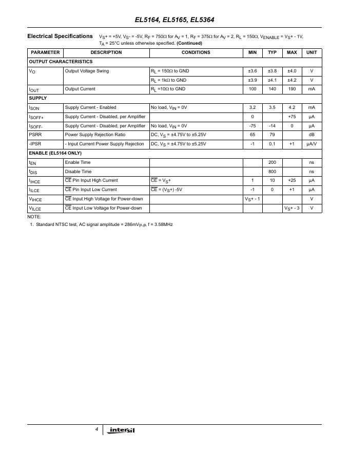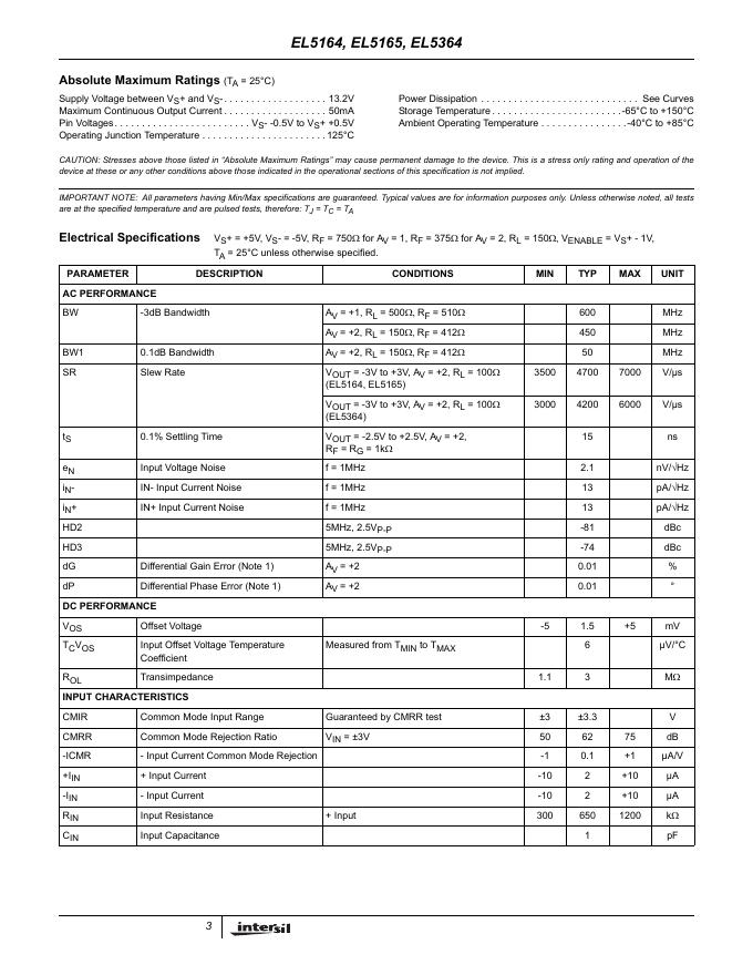 intersil EL5164, EL5165, EL5364 数据手册.pdf