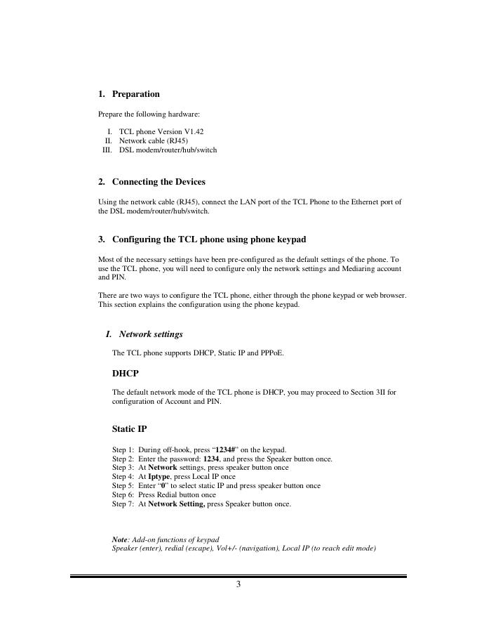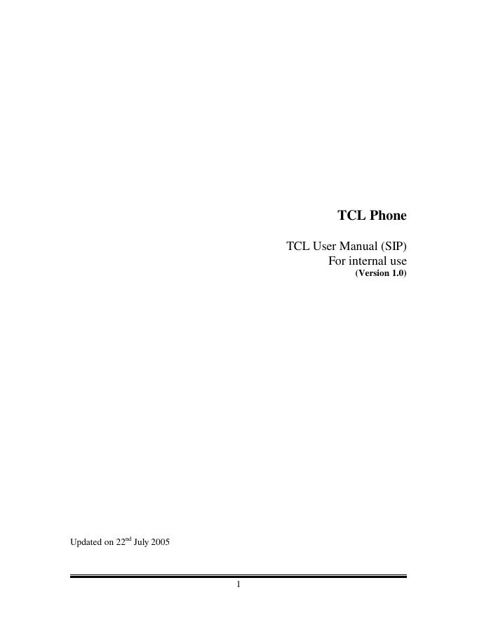 TCL Phone TCL User Manual (SIP) For internal use (Version 1.0) 数据手册.pdf