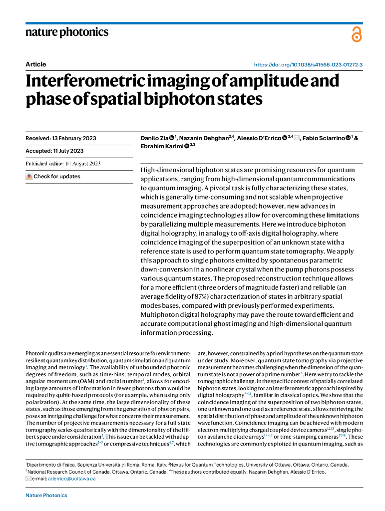 科学家实现量子纠缠可视化论文原文:Interferometric imaging of amplitude and phase of spatial biphoton states.pdf