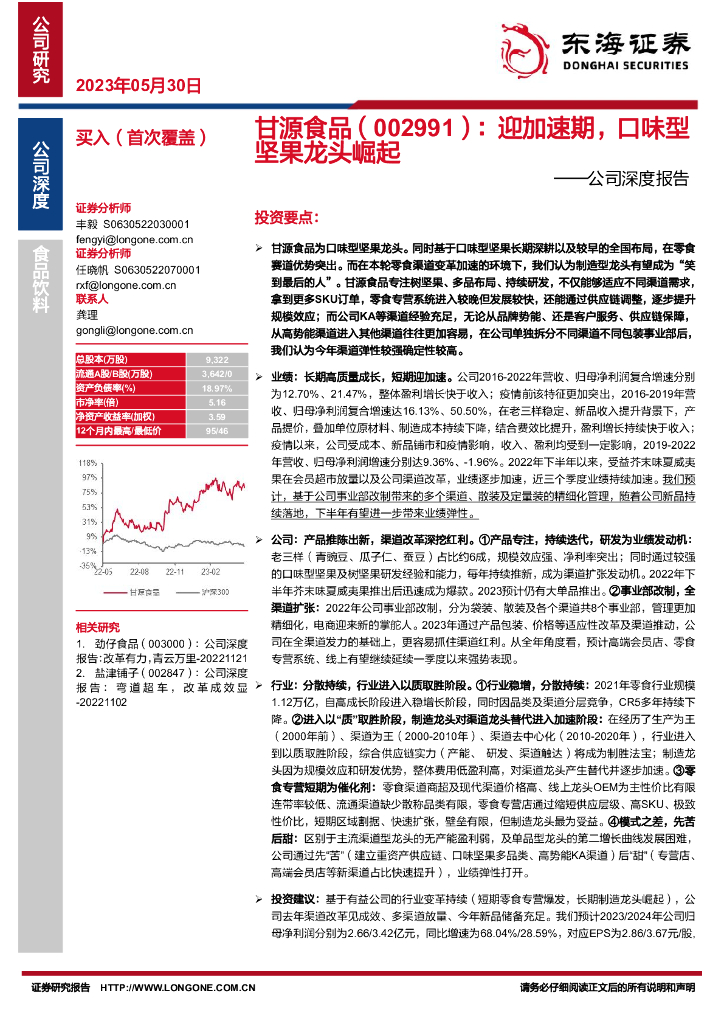 东海证券:甘源食品(002991)-公司深度报告:迎加速期,口味型坚果龙头崛起.pdf