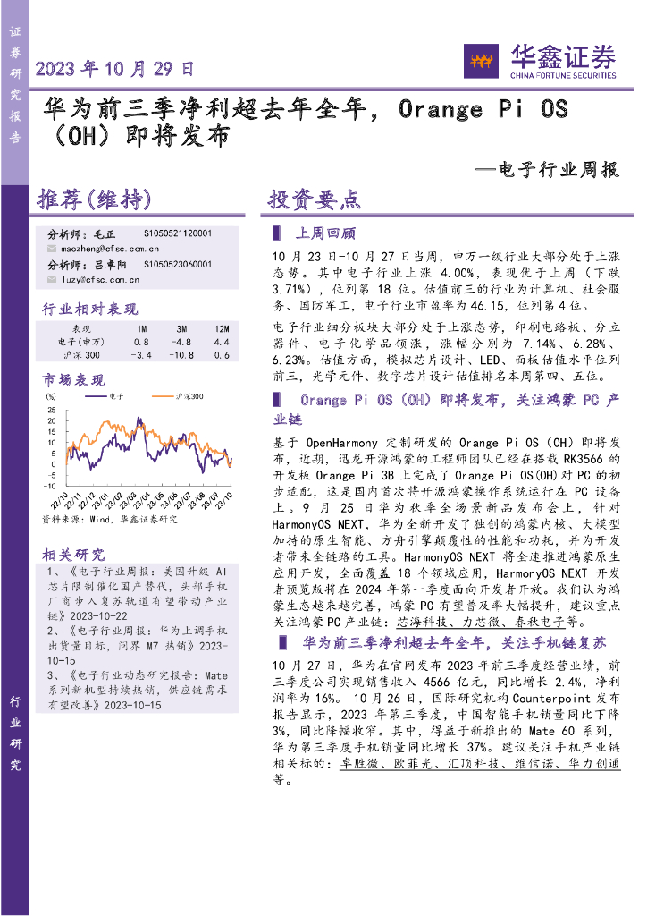 华鑫证券:电子行业周报:华为前三季净利超去年全年,Orange Pi OS(OH)即将发布.pdf