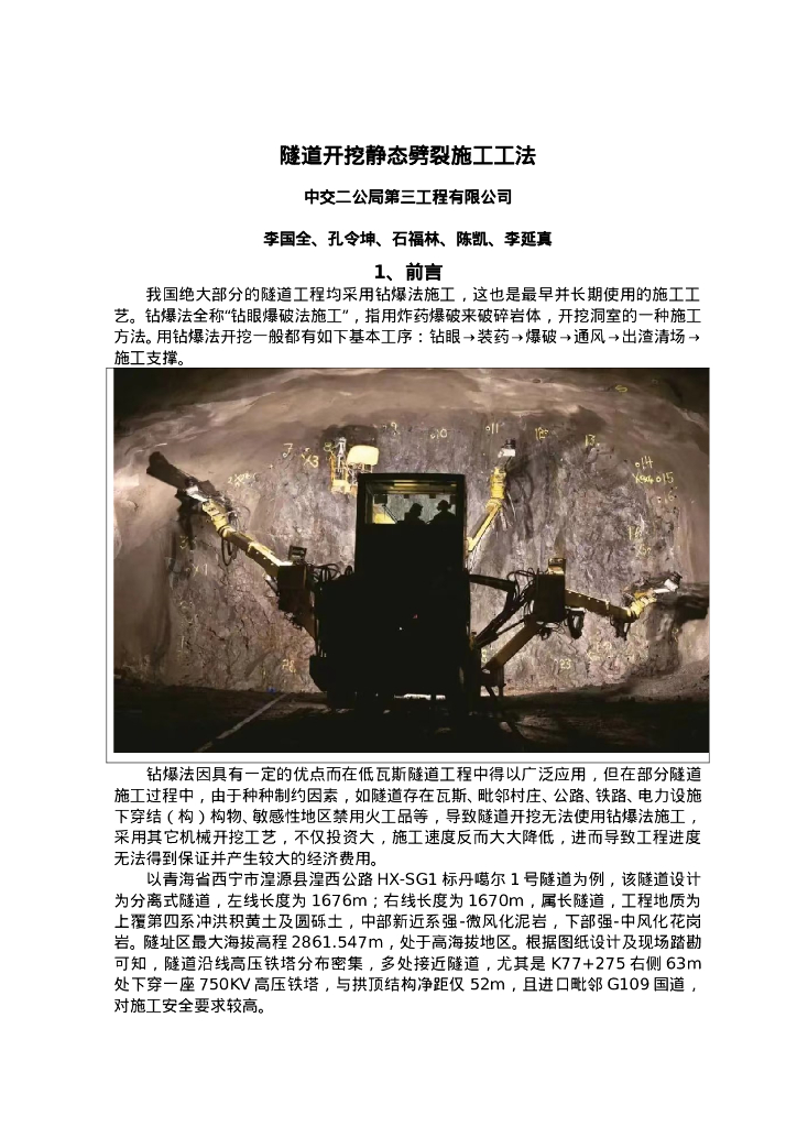 QHGF-2022007 隧道开挖静态劈裂施工工法.doc