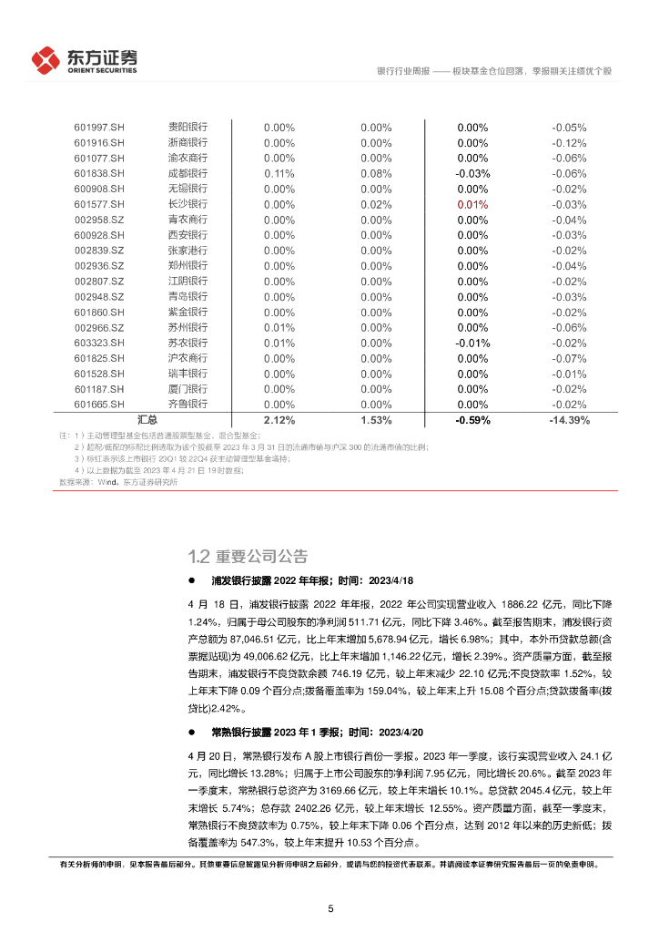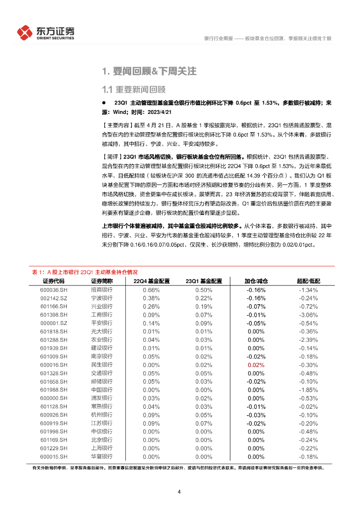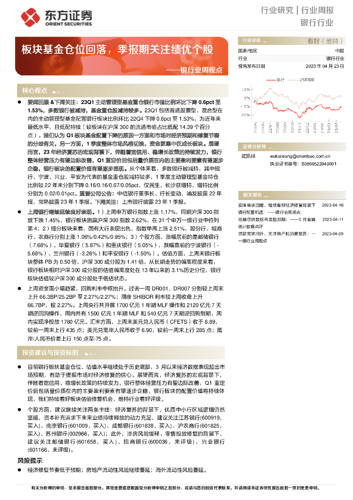 东方证券:银行业周观点:板块基金仓位回落,季报期关注绩优个股.pdf