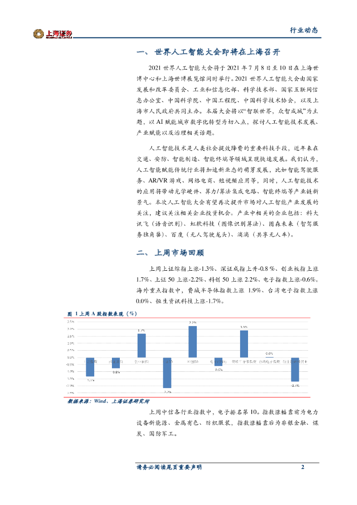 上海证券:电子行业周报:2021世界人工智能大会即将在上海举行.pdf