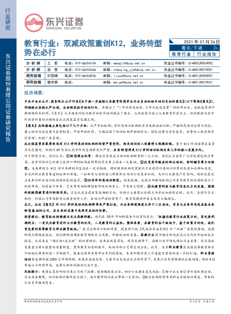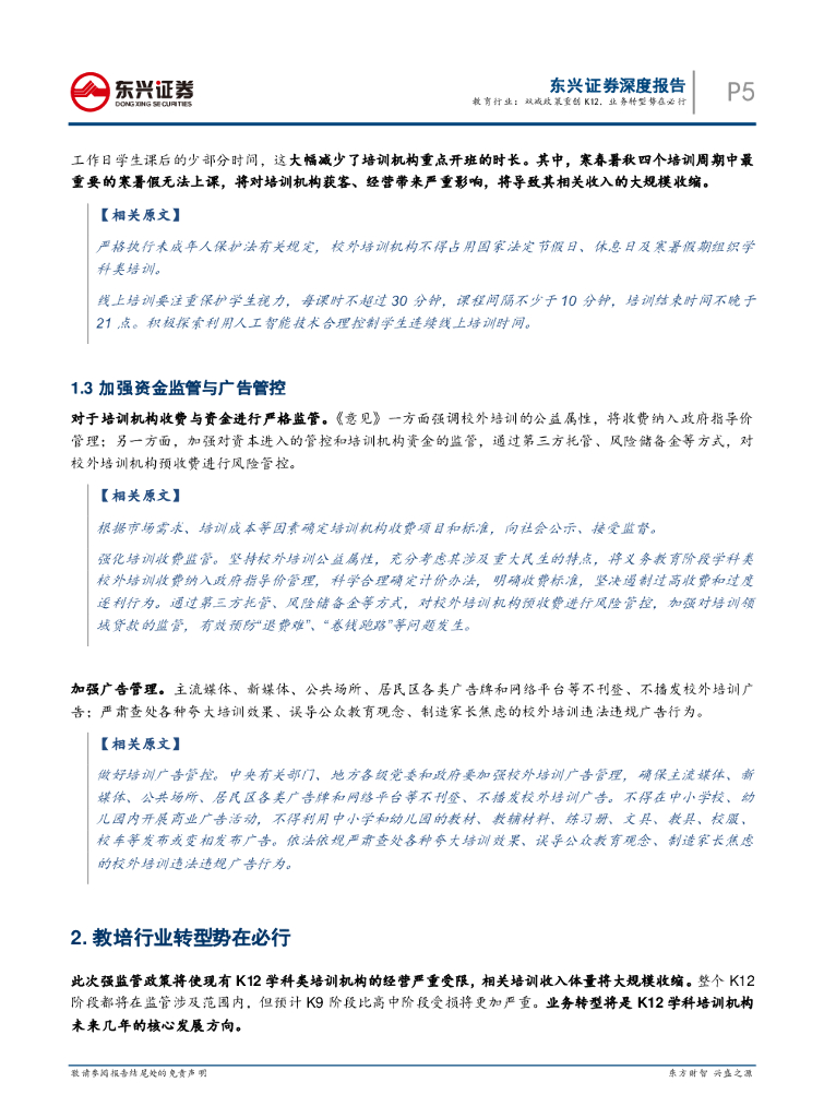 东兴证券:教育行业:双减政策重创K12,业务转型势在必行.pdf
