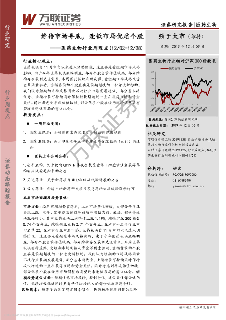 万联证券:医药生物行业周观点:静待市场寻底,逢低布局优质个股.pdf