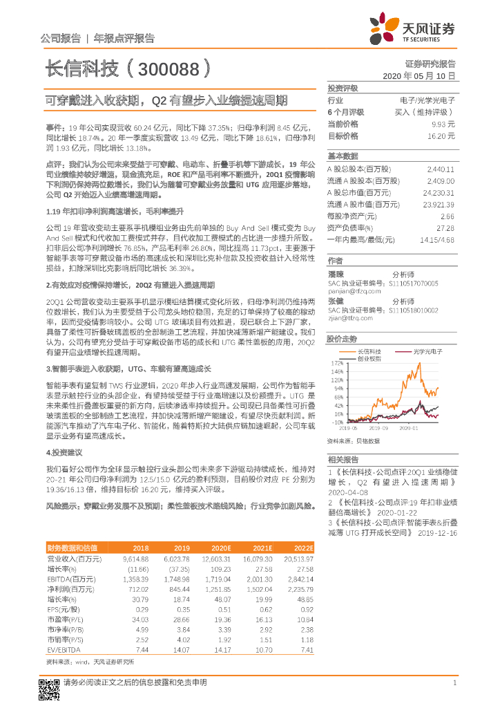 天风证券:长信科技(300088)-可穿戴进入收获期,Q2有望步入业绩提速周期.pdf