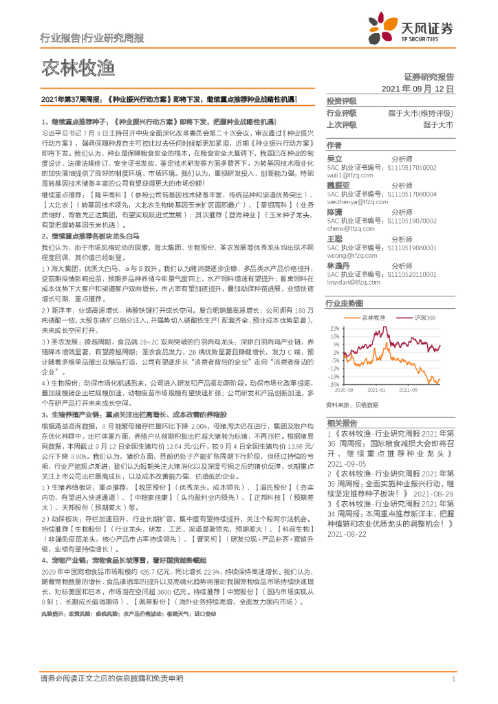 天风证券:农林牧渔2021年第37周周报:《种业振兴行动方案》即将下发,继续重点推荐种业战略性机遇!.pdf