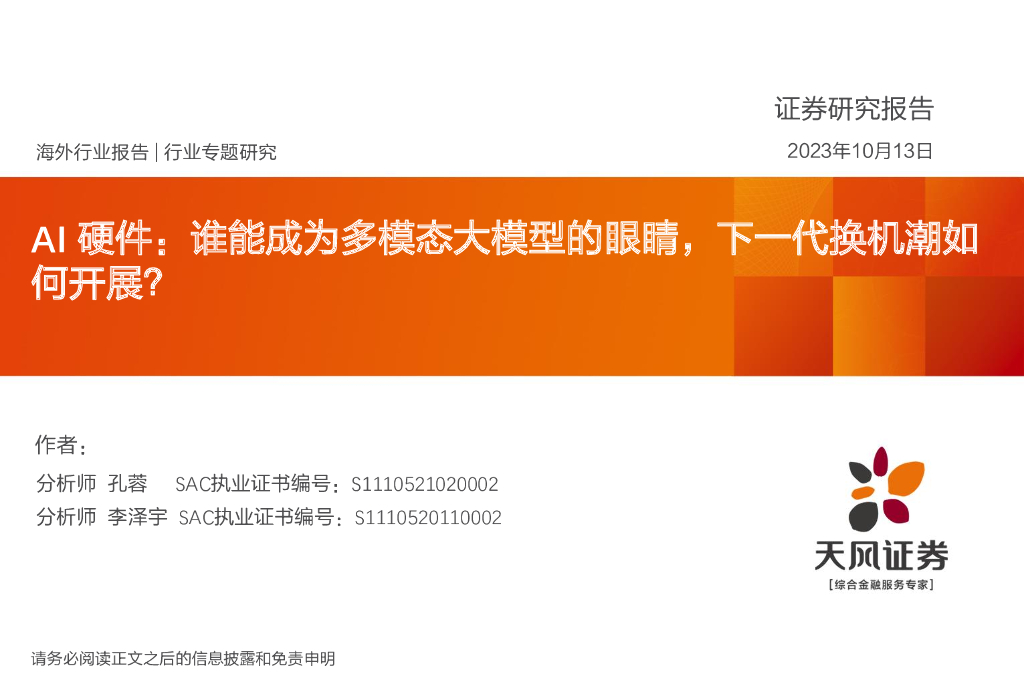 天风证券:AI硬件:谁能成为多模态大模型的眼睛,下一代换机潮如何开展?.pdf