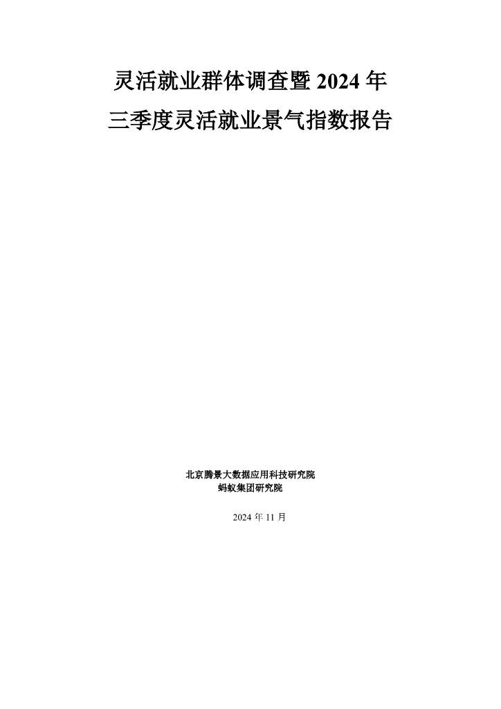 腾景&蚂蚁集团研究院:灵活就业群体调查暨2024年三季度灵活就业景气指数报告.pdf