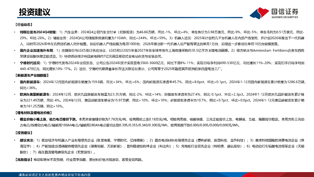 国信证券:锂电产业链双周评(2月第1期):特斯拉机器人进展顺利,宁德时代2024年业绩稳健增长.pdf