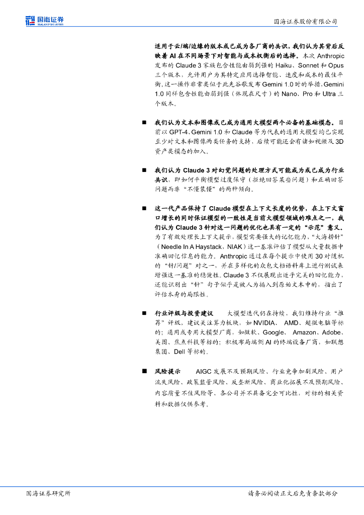 国海证券:海外行业动态研究:Anthropic发布Claude3家族,整体性能超越GPT-4.pdf