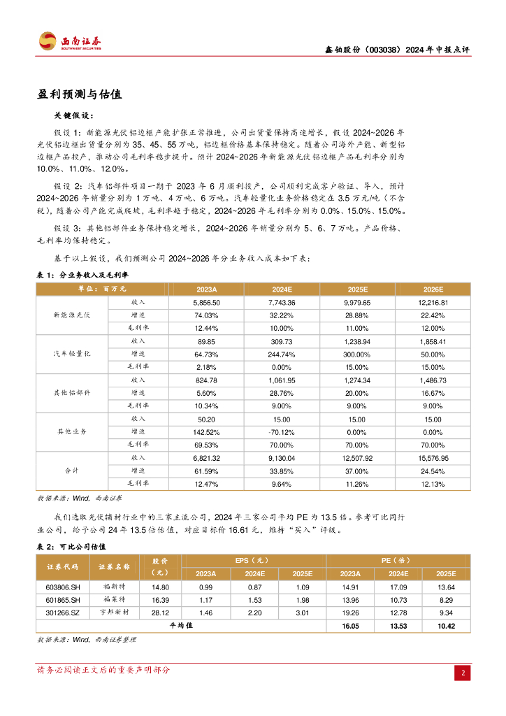 西南证券:鑫铂股份(003038)-2024年中报点评:Q2业绩稳健增长,新项目扭亏有望提升盈利.pdf