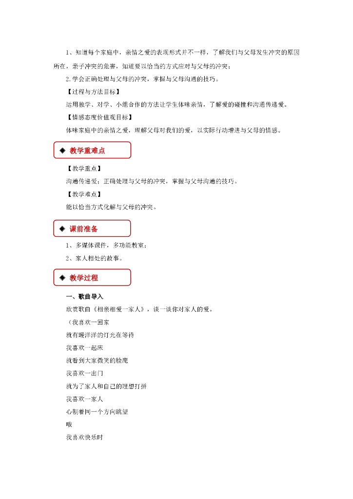 七年级上册 初中道德与法治7.2《爱在家人间》教学设计1.doc